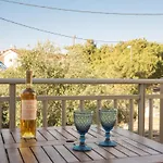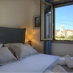 Das Apartment Luxury Gem Overlooking The Church, 150M From Beach bietet einen Wohnbereich, eine Terrasse und eine Küche und Annehmlichkeiten wie eine Klimaanlage.